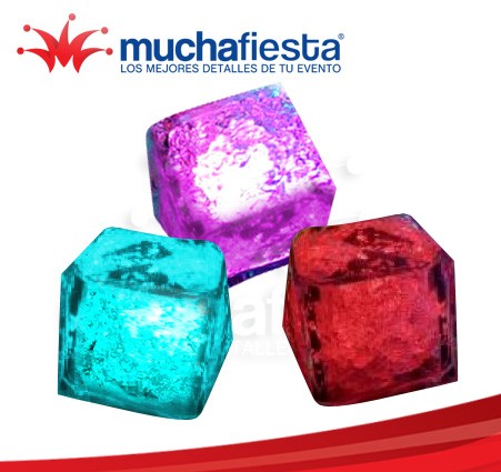 Cubo elaborado en plástico, sumergible en agua, Funciona presionando un botón con 6 cambios de luz, incluye pilas. Tiene 5 colores de luz