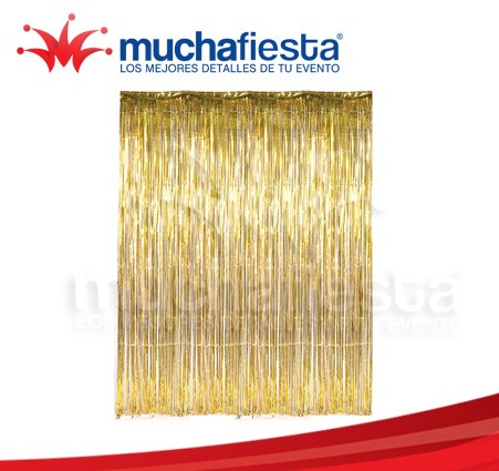 Cortina de tiras metálicas. Tamaño 90cm x 2.40 mts de alto. Color oro