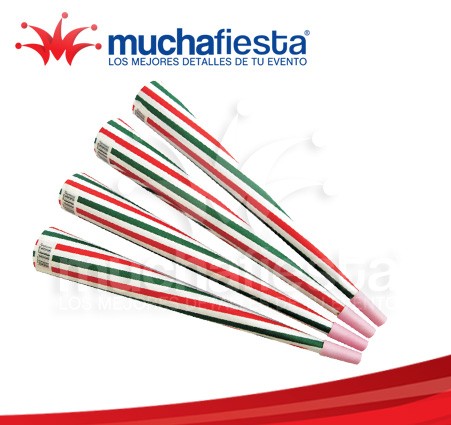 Corneta de Cartón, Tamaño 35 cm. Color Tricolor, Presentación Paq. 10 pzas, Precio por pieza