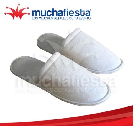 Pantufla elaborada en tela de algodón y suela antiderrapante con soporte acojinado. Medida Unitalla. Se vende en color blanco, Venta mínima 50 pares , Precio por par