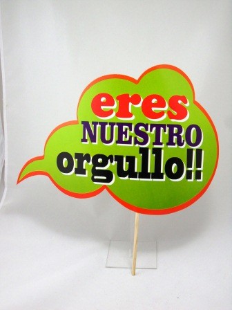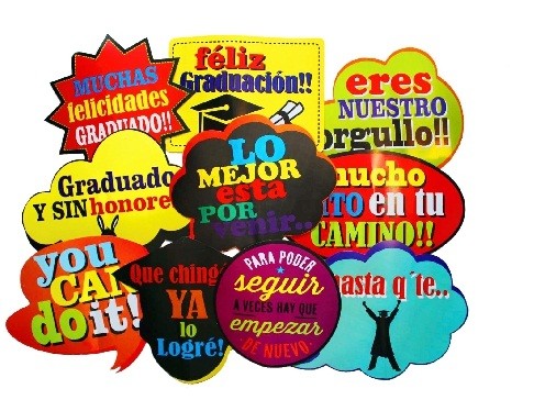 Letreros elaborados en cartón, tamaño estandar, paquete con 10 letreros con mensajes surtidos, precio por paquete