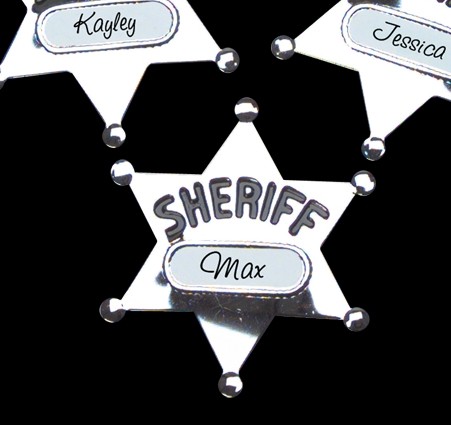 Pieza elaborada en metal con letrero de Sheriff, Tamaño unitalla, Presentación 1 pieza, Precio por pieza