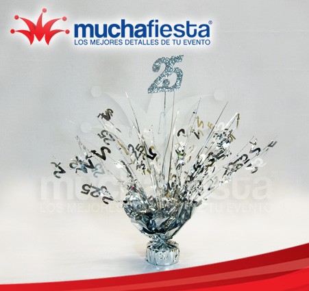 Centro de mesa metálico, Medida 43 cm alto, Incluye gancho para sostener globos, Color plata, Precio por pieza