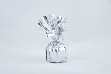 Pieza con peso forrada con papel metalico para sostener globos, tamaño 15 cm, Se vende por pieza, precio por pieza