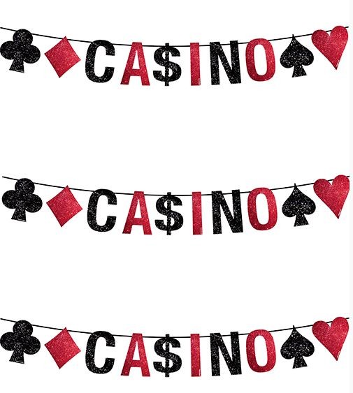 Banner con letras glitter de cartón , Figuras de poker alto 24 cm, banner largo 2mts, Impresión 1 cara, Precio por pieza