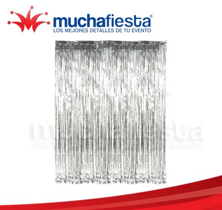 Cortina de tiras metálicas. Tamaño 90cm x 2.40 mts de alto. Color plata